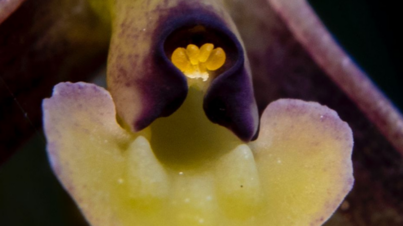 · Descripción: Orquídea de pétalos verdes y púrpuras que florece entre julio y agosto.